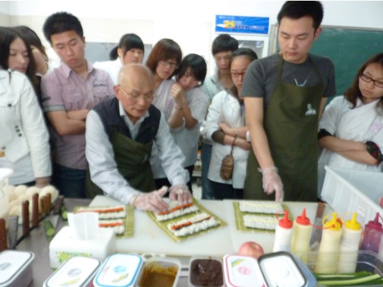 彼特是一位云游欧美亚几十个国家的美食家,并是一位有着精湛厨艺的美食制作家,外表精瘦却干练幽默。它打破了传统上课的格局提出让同学们围绕在他身边仔细观察其制作手法及流程。独特的制作手法、亲手酿制的原料让在场的同学们都大开眼界,受益匪浅。期间,彼特更是特意挑出了十名同学与他一同制作,亲身体验。他亲手制作的号称无添加任何添加剂和防腐剂原材料更是吸引了不少同学的好奇心,幽默的话语让全场的气氛持续愉悦。