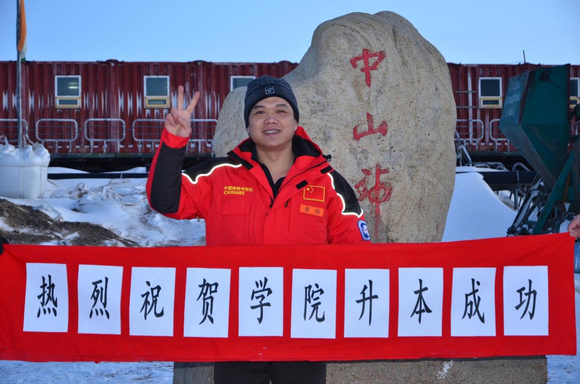 本院黄伟老师自去年赴南极参加社会服务以来,一直对学院动向密切关注。以下是黄伟老师从南极发回来,祝贺学院顺利升本的图片。