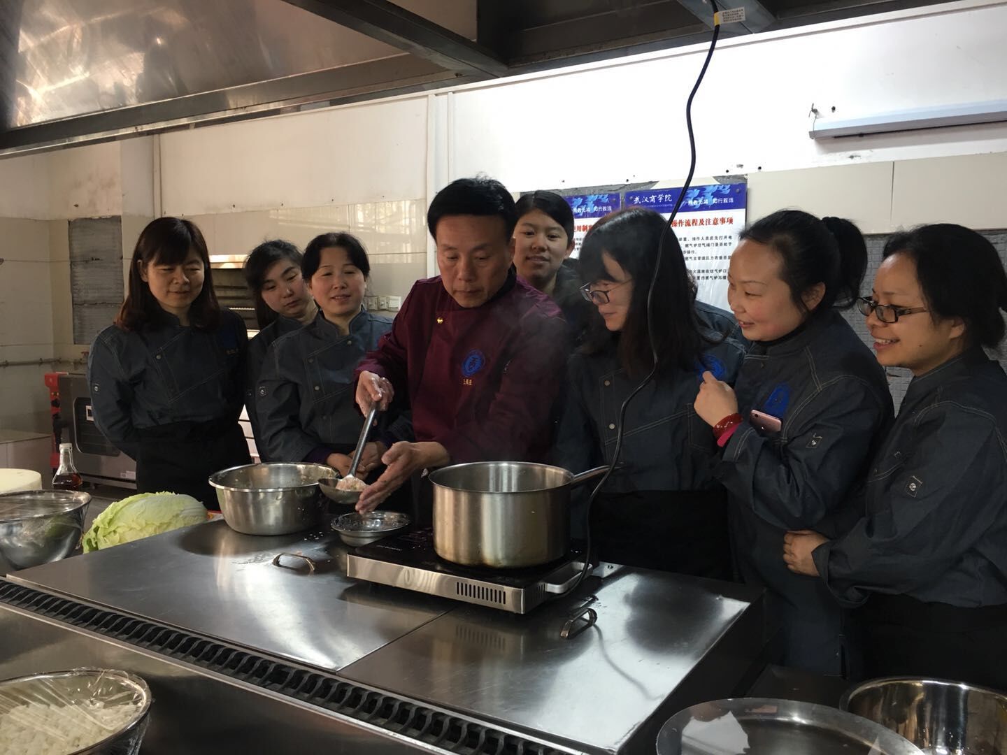 据王辉亚说,狮子头是苏菜淮扬菜系中的一道传统菜肴。传说狮子头做法始于隋朝,是在隋炀帝游幸时,唐代郇国公韦陟的家厨韦巨元做松鼠桂鱼,金钱虾饼,象牙鸡条,葵花斩肉四道名菜,令座中宾客叹服,葵花斩肉后被改名为狮子头。此菜讲究形,是刀功的体现;讲究味,又被称为是一道火功菜,以火为纪,鼎中之变,微在精妙,食材的精挑细选,手艺的精湛讲究,在文火慢炖的细密中,耐心等待着那一份完美幻化之后,体现在舌尖之上的细腻。三八妇女节来领之际,制作此菜一是狮子头有团团圆圆的美意,二是可以通过传统菜肴的制作让女老师既可以提高厨艺也可以和专业相结合。