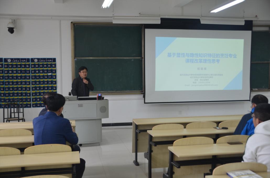 本网讯 2018年4月23日下午在北4-318,哈尔滨商业大学博士生导师杨铭铎应邀我院举办题为“基于显性与隐形知识特征的烹饪专业课程改革理性思考” 的学术讲座,学院院长杨军主持,学院教师学生130人到场聆听。