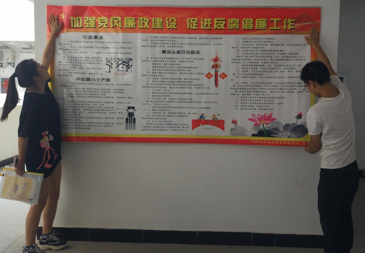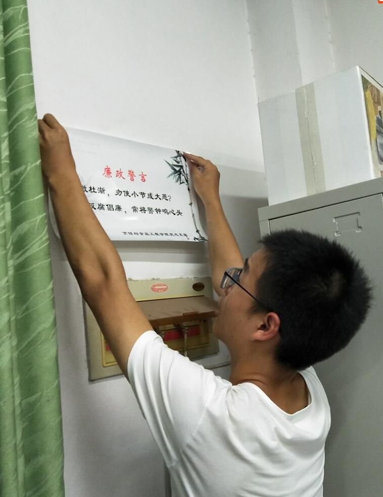 本网讯2018年5月23日,我院特研会组织成员在南四烹饪大楼办公室、楼道、学生活动室等地张贴廉洁漫画海报30余张,引发来往学生的观看。