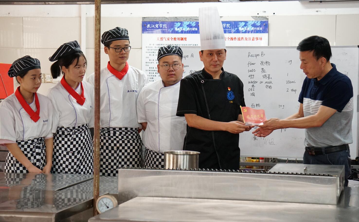 本网讯 为充分发挥党员的先锋模范作用,展示良好的党员形象,增强服务意识、提高综合素质、5月28日,我院党总支开展以“亮身份、树形象、做表率”为主题的“党员示范岗”挂牌在西餐实训室举行。
