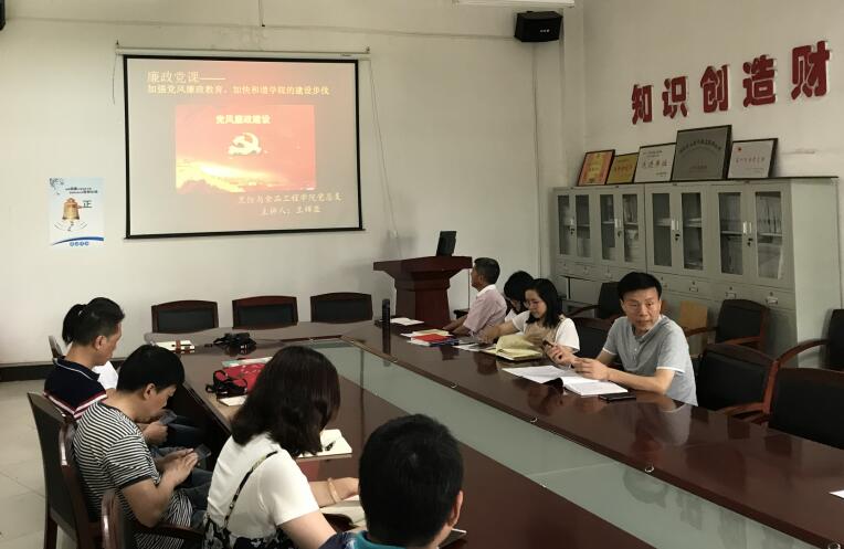 本网讯 2018年5月29日下午2点在学院206会议室,学院党总支书记王辉亚作了题为 《加强党风廉政教育 加快和谐学院的建设步伐》的廉政党课宣讲,学院全体党员教师参加学习。