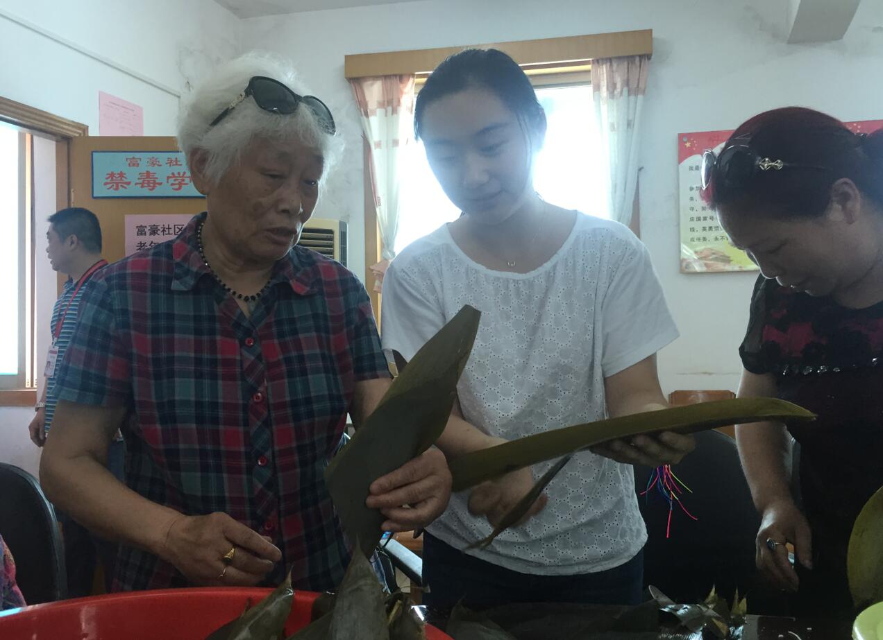 本网讯 五月初五端午佳节,粽叶飘香,为了更好地发掘、传承端午节的文化内涵,唱响“我们的节日--端午”主题。6月12日下午3点,我院与武汉市科技局联合开展名为“巧手做香粽,端午齐欢乐”的活动在汉口富豪社区党员活动中心举行。我院9名师生现场传授制作香粽和盐蛋网袋制作方法,50余名社区居民前来参加,大家特别的方式迎接端午节的到来。
