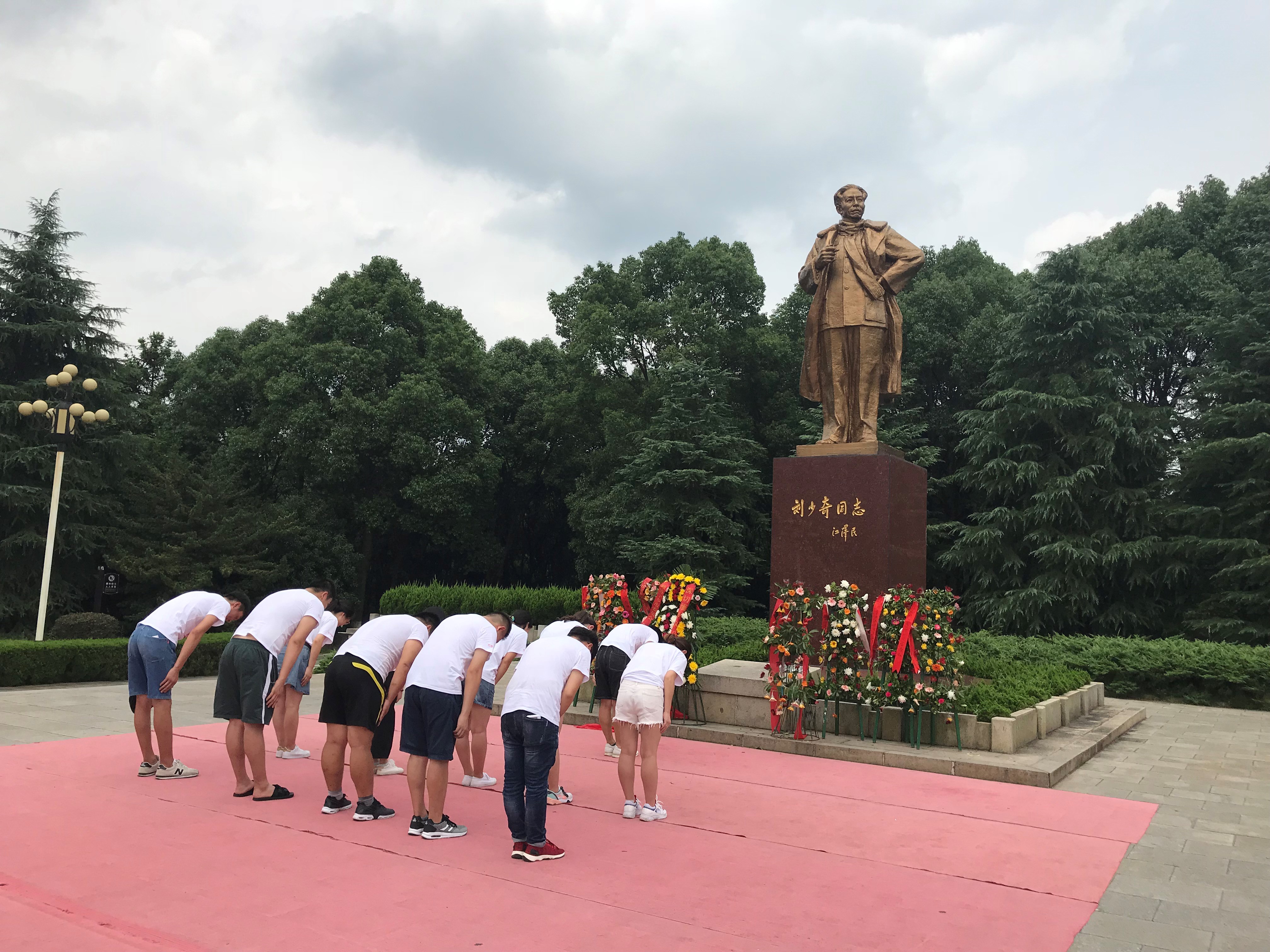 在刘少奇铜像广场前,郭英策老师带领大家给刘少奇铜像献花,庄严地向刘少奇像鞠躬,表达了对伟人的敬仰与缅怀之情。