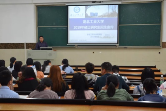 本网讯 2018年9月28日上午,我院在南区投二举行湖北工业大学专场考研宣讲会。为了做好本次考研宣讲会,特邀湖北工业大学生物工程与食品学院的办公室主任黄煌、胡冰博士来院。15烹饪与营养教育、17烹饪与营养教育(专升本)和16食品质量与安全近40人参加。