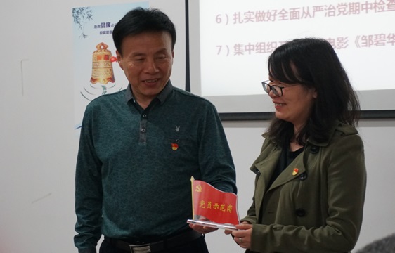 学院党总支书记王辉亚为汪师帅老师“共产党员示范岗”授牌。