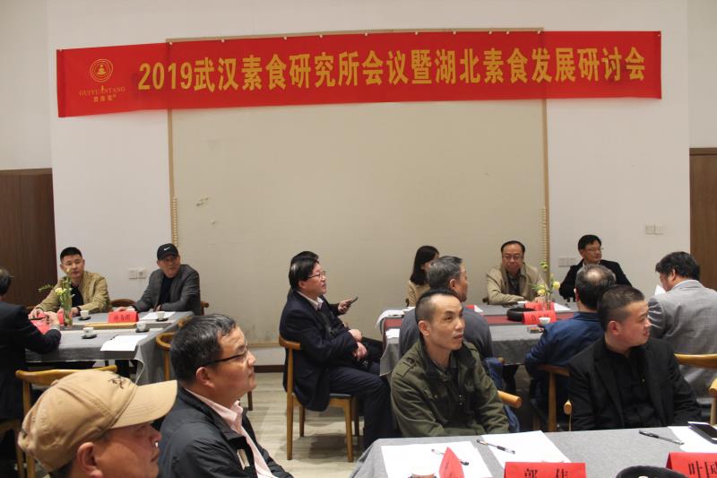 本网讯(见习记者 郑慧)为促进素食的研究和生产,加强武汉素食研究所服务湖北素食开发的能力以及研究所与湖北素食企业的合作,3月30日,由武汉商学院武汉素食研究所主办的武汉素食研究所会议暨湖北素食发展研讨会在武汉贵缘堂素食馆顺利召开。我校院领导王京章,我校烹饪与食品工程学院院长杨军,副院长眭红卫,华中师范大学博士生导师姚伟钧教授,我校武汉素食研究所所长鲁永超,副所长李明晨,副所长周圣弘教授,我校烹饪与食品工程学院副教授董红兵,咸宁天弘素食研究所李天弘,襄阳素食文化专家罗利强,华中农业大学素食研究学者蔡波,随州素食大师余怡斌,武汉天养坊生态科技有限公司研发总监周三彦,武汉宝通禅寺素食馆总经理徐子鸿等相关人士出席本次会议。会议分为上半场和下半场,本次会议由武汉素食研究所副所长李明晨主持。