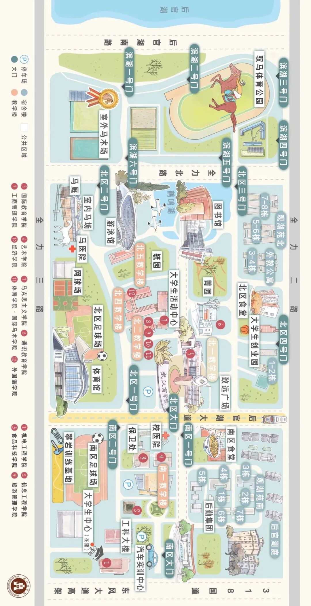 (1)从318国道、汉宜高速或京珠高速公路方向驾车来学校的车辆,出武汉西收费站往汉阳方向行约1.5公里处,在全力三路左拐,直行到全力北路右转后,车辆可临时顺向停放在全力北路(全力二路与全力三路段)非机动车道上。