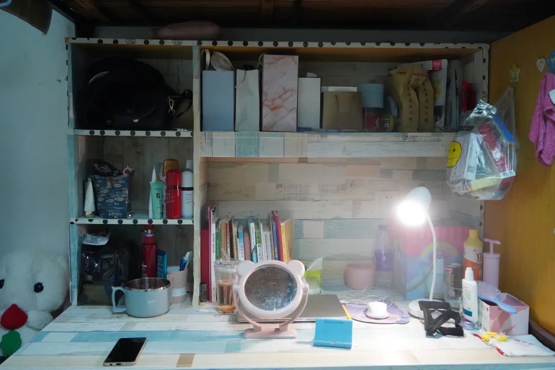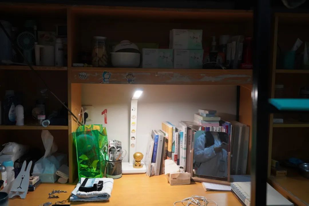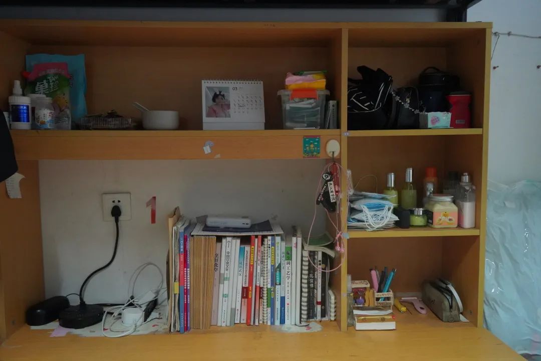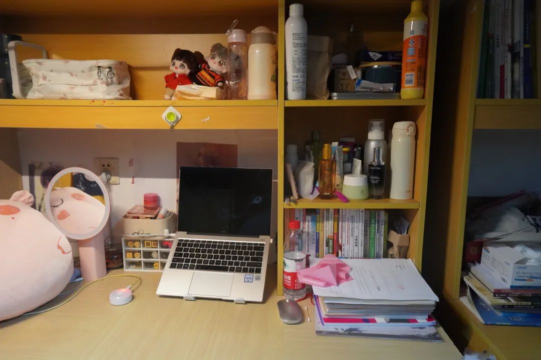 b.桌面:书本统一有序整理。若日常用品较多,学生应购买收纳盒统一归置,餐具或其他用品单独收纳,保证桌面干净整洁,物品摆放有序;