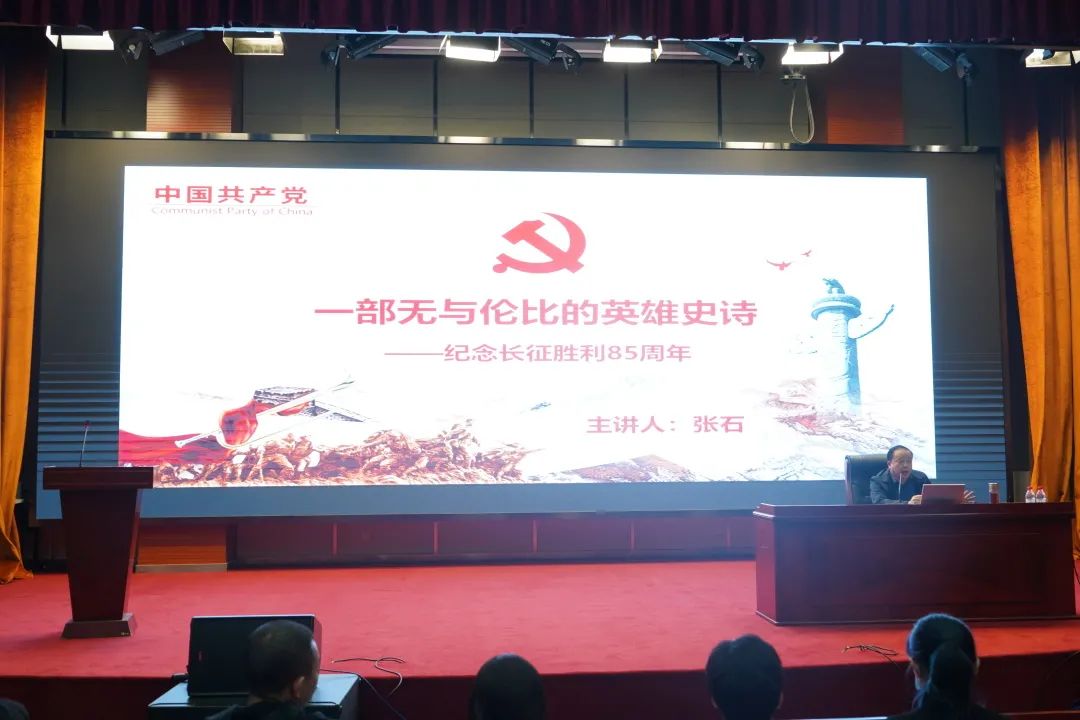 讲座开始后,由张石副校长讲授第一讲:长征精神,为纪念长征精神胜利85周年,张石副校长分别讲述三个主题:为什么要纪念红军长征?长征是一个怎样的伟大历程?长征留给我们哪些宝贵的精神财富?