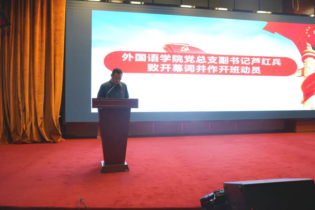 大会正式开始第二项,外国语学院党总支副书记芦红兵,给全体成员致开幕词并作开班动员——适应社会的发展,紧跟时代的潮流。加强党史、国史和新中国社会主义发展史的学习,力争早日成为一名优秀的共产党员。