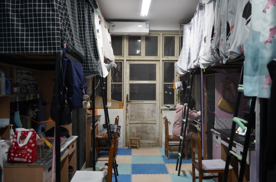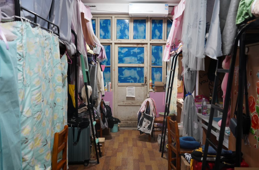 南三518|简洁明了的布置,各具特色的床帘,方块格与整间宿舍相映相衬托,真叫人看着惬意。