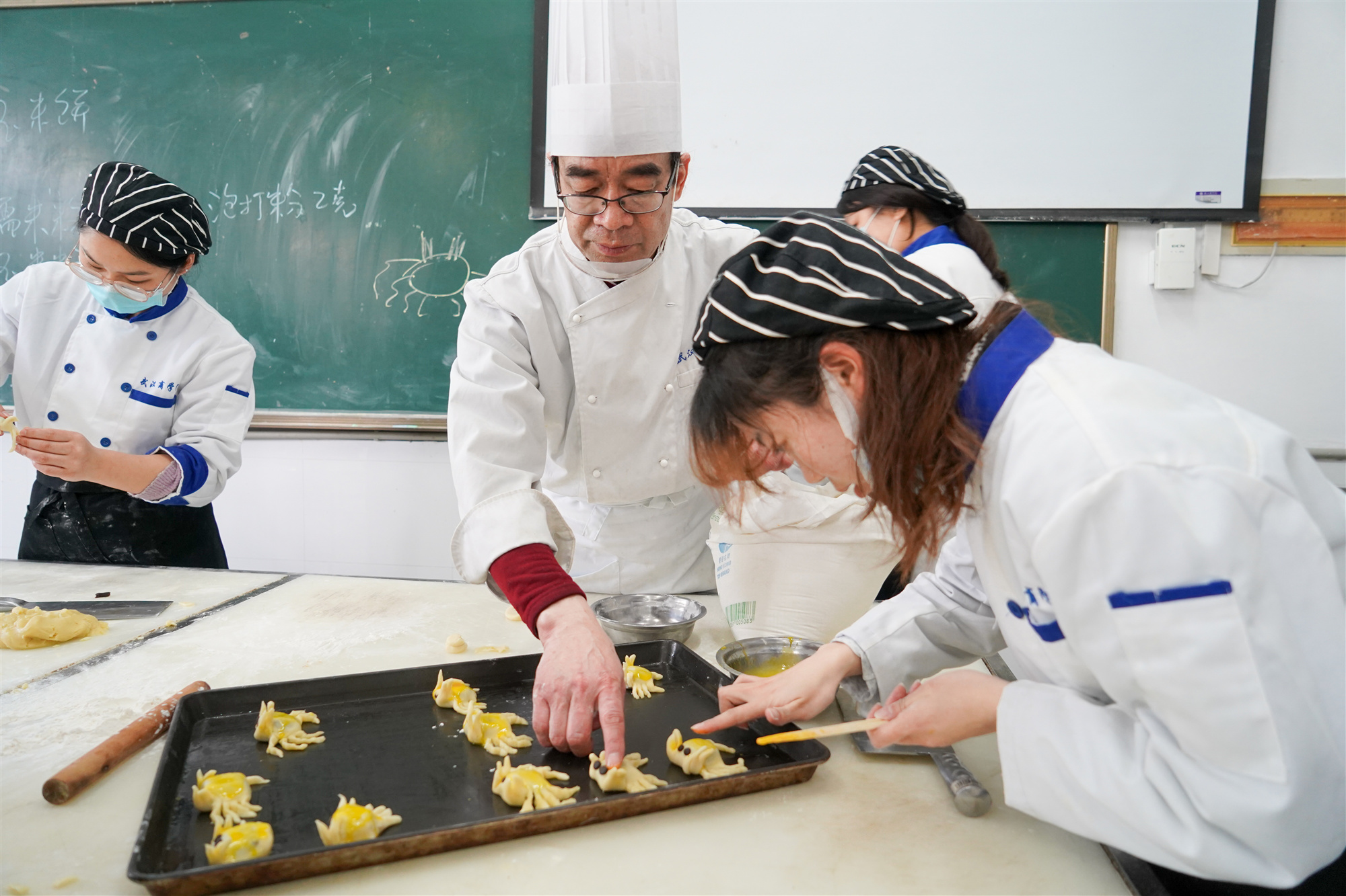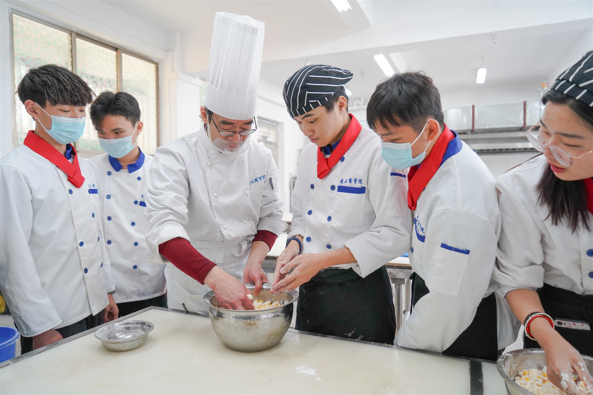 为让学生更加了解茶文化,学习茶点制作。4月12日,由我校精品国产91主办、美食与营养协会承办的茶点制作活动在南四104实训室举行。活动以“茗香四里,食慰武商”为主题,以中国的传统茶文化为载体,中国烹饪大师方元法现场教学中国传统茶点小吃制作方法。